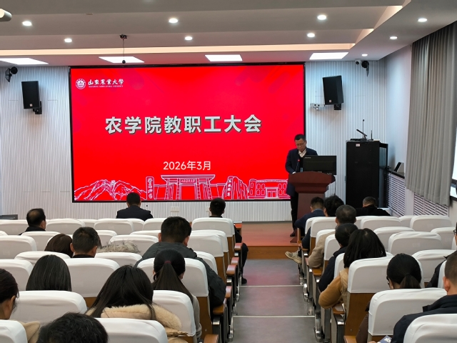 3月12日,农学院在胜之楼召开教职工大会,传达学习了学校党委八届七次全体会议精神和第十一届教代会暨第十七届工代会第三次会议主要精神,听取农学院2025年度工作报告以及本年度工作部署,听取学院工会2025年度工作总结和本年度工作思路,提出意见和建议,并对农学院2026年度工作计划、学科建设、教职工队伍建设等进行讨论审议。