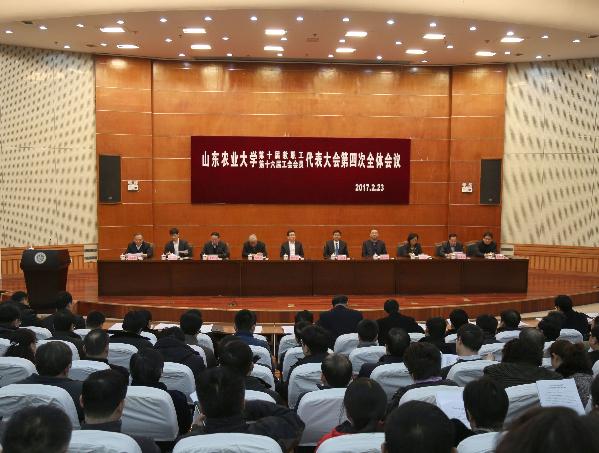 2月23日,山东农业大学第十届教代会暨第十六届工代会第四次会议、党委中心组学习暨处级干部工作研讨班隆重举行。学校党委书记徐剑波在会上作了题为“凝神聚力加油干 乘势而上促发展”的重要讲话,张宪省作校长工作报告。会议号召全校教职员工凝神聚力,抢抓机遇,攻坚克难,加快落实学校“十三五”发展规划和综合改革各项任务,为建设高水平大学作出新的更大贡献。