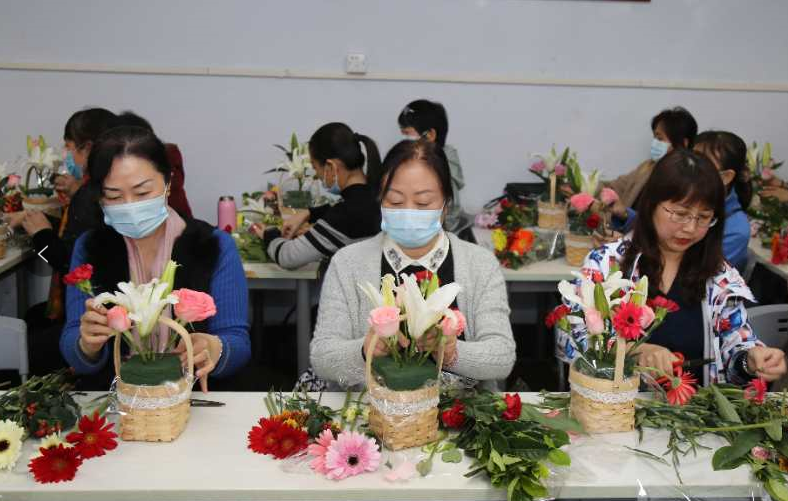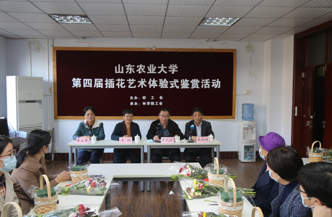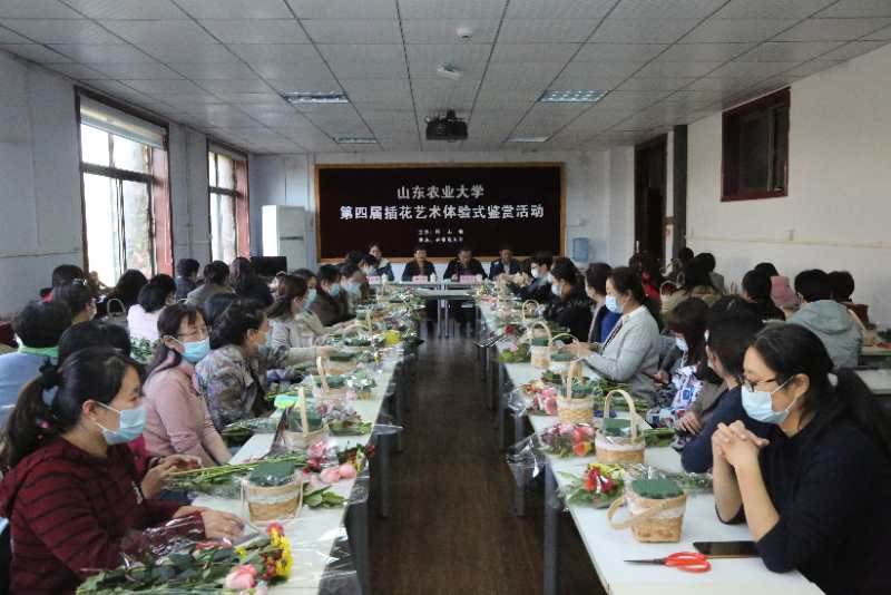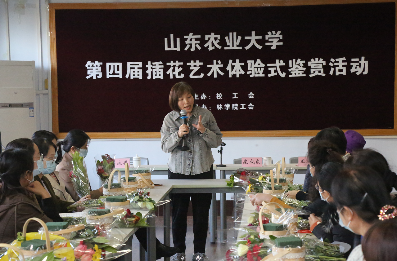 秋意浓,花为伴,10月23日,山东农业大学举办第四届教职工插花艺术体验式鉴赏活动。此次活动由校工会主办,林学院承办,小不点花艺店协办,来自全校22个部门工会的近60名教职工参加。