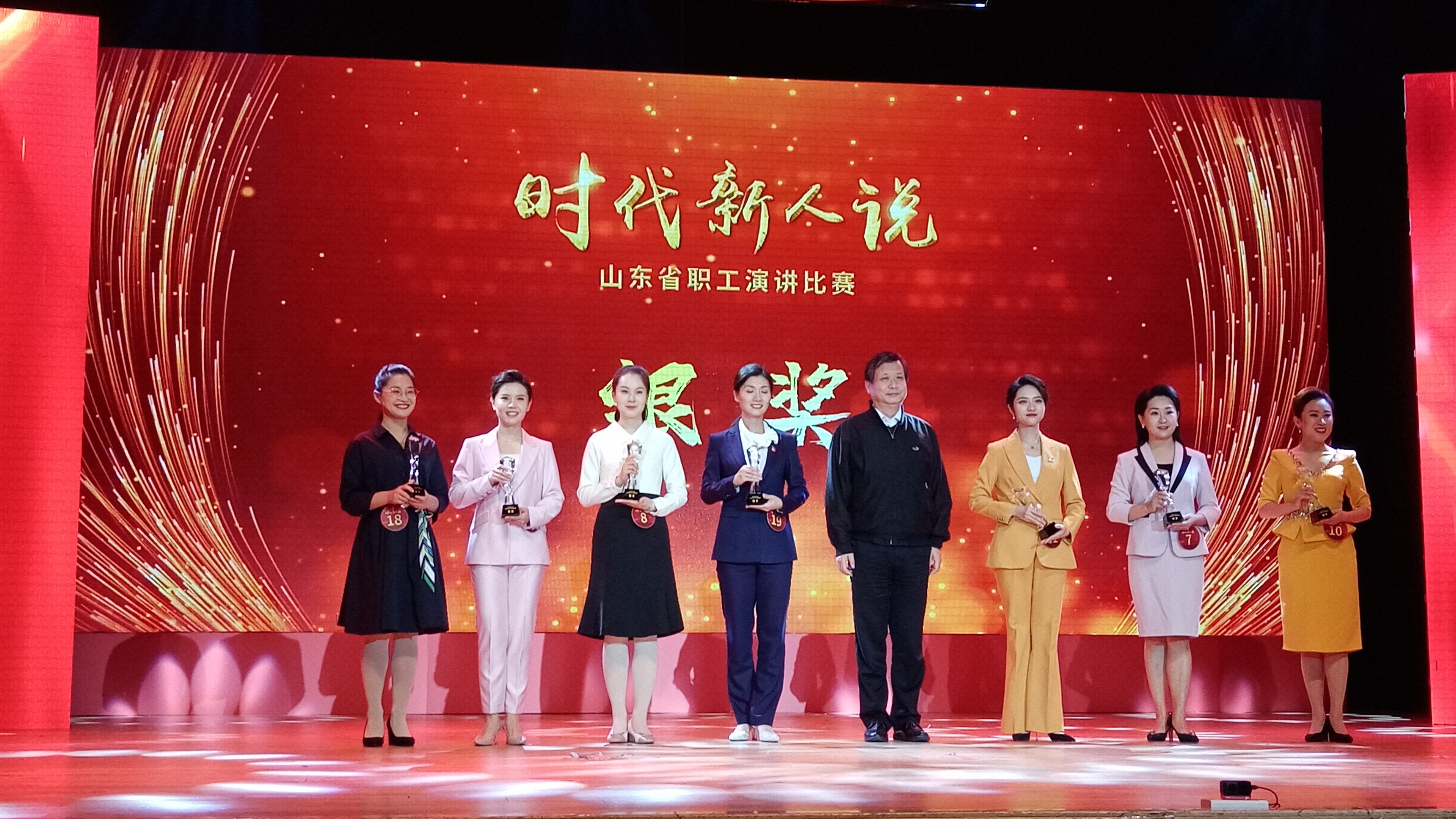 韩艳(左二) “时代新人说”全省教职工演讲比赛,12月2日在山东广播电视台圆满落幕。我校工会选送的选手韩艳登上银奖领奖台。 本次比赛由山东省总工会主办,比赛共收到各地市报送的演讲视频作品1129件。经平台投票,共计100件作品入围专家评审阶段。经过专家评审,选出20名选手进入现场决赛。 决赛中,代表我校和泰安市总工会参赛的水利土木工程学院辅导员韩艳,用身边生动鲜活的事例和她自己对辅导员工作的热爱和感悟,深情演绎和赞美了劳模精神、劳动精神、工匠精神,深深打动了评委和现场观众,最终获得全省银奖。