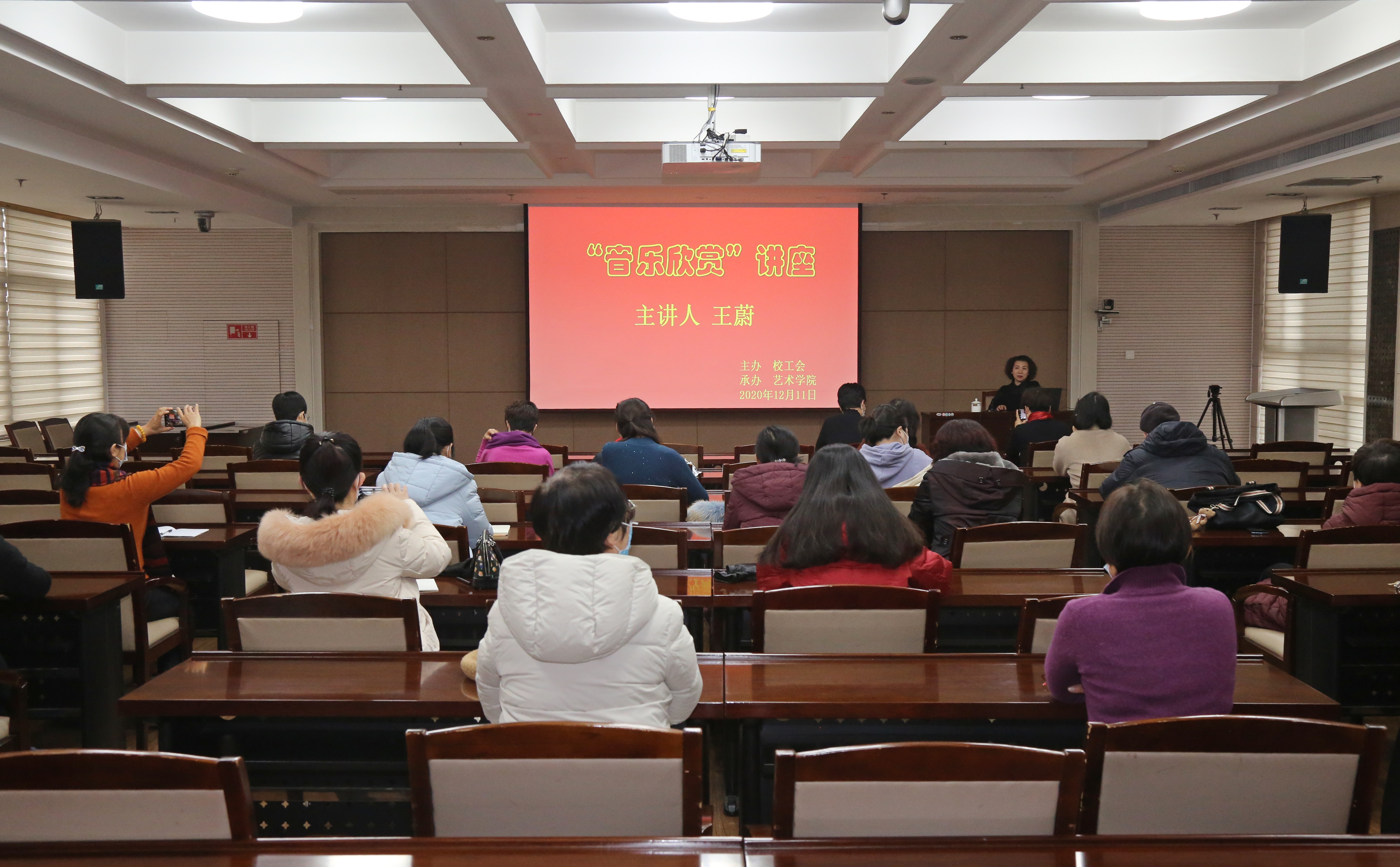 12月11日下午,由校工会主办、艺术学院承办的山东农业大学“音乐欣赏”讲座在学实楼601会议室成功举办。活动邀请了艺术学院教授王蔚。教职工中的音乐爱好者积极响应并踊跃参加。 王蔚系统讲解了中国民族音乐的发展历史,以及不同阶段、不同区域的音乐特点、鉴赏方法和唱法。她讲到,中国是一个有着几千年文明历史的国家,有着丰富多彩的民族文化。民族音乐是生活、繁衍在中国大地上的各民族人民创造的具有民族特色的音乐,是各民族人民祖祖辈辈传承下来的习俗、文化、精神的结晶,代表了各民族人民的历史传统和民族精神。王蔚还向在座教职工分享了民族音乐演唱发声的练习方法,讲解声情并茂,现场气氛浓烈。 “音乐欣赏”讲座的开办推动了高雅艺术走进校园,有利于帮助教职工提升艺术修养、增强文化内涵、丰富精神世界。据悉,工会今后将继续围绕教职工需求开展精准服务,打造高品位、品牌化的校园文化活动,引领教职工凝心聚力,为学校发展贡献力量。